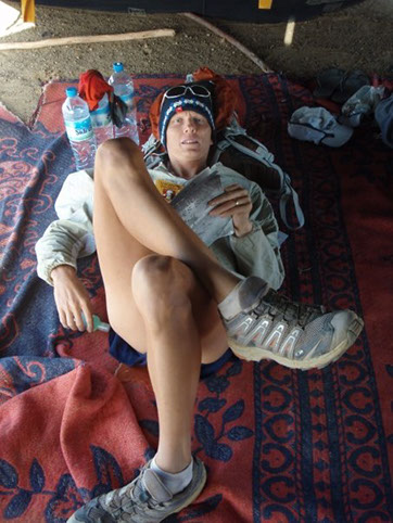 PEGGY PREPARES FOR THE FIRST HILL AND JEBEL OF THE DAY