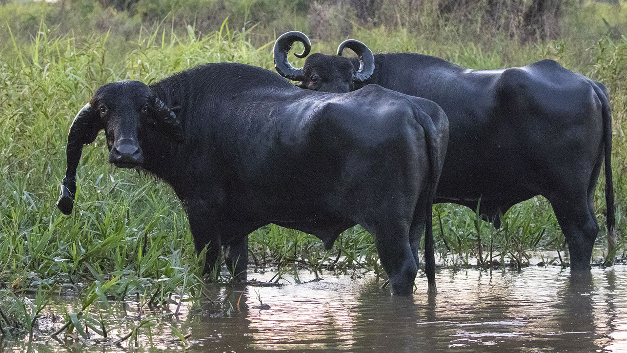 WATER BUFFALOS (ONE WITH DEFLATED HORN??)