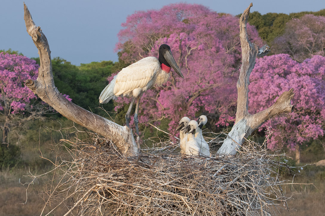 JABAROO FEEDING CHICKS. SOUTH WILD PANTANAL LODGE