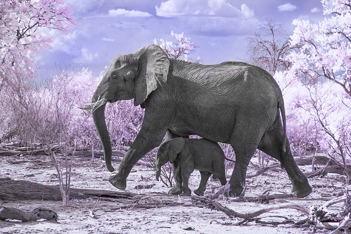 MOTHER AND BABY ELEPHANT, LINYANTI, BOTSWANA, 2017