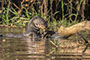 JAGUAR SWIMMING WHILE HUNTING A CAIMAN